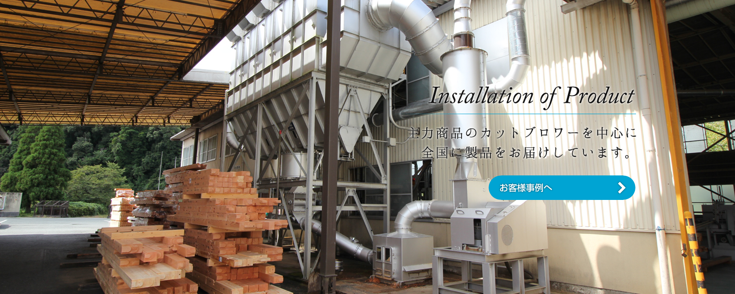 Products 製品紹介 カットブロワー 内部のハネ(ファン)に交換可能な刃を取り付けたブロワーです。 鋳物排風機 吸引した木片を粉砕しおが屑に破砕し、ダクトを経して飛ばします。 プレートファン ファンの回転による風力で菅を経由して物を遠くに飛ばす装置です。 サイクロン ブロワーから送給されたおが屑を空気とおが屑に分離する装置です。 製缶 工場などのダクトに用いる金属製品も一貫して対応いたします。 アフターサービス 機械設置後の定期点検、メンテナンスも承っております。